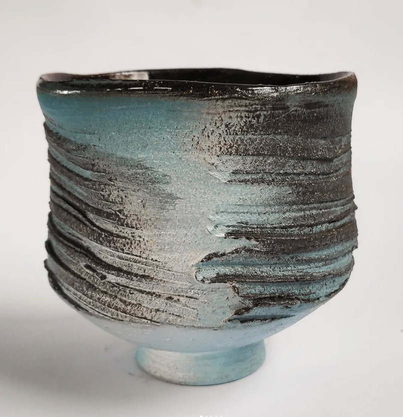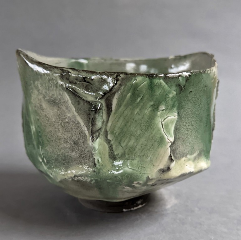 Bei dieser Technik werden die Gefäße nicht gedreht sondern aus “geschlagenen” (slap) Tonplatten geformt. Extrem geeignet für die “Wilden Tone” weil hier die Masse besonders interessant reißt, sich verformt und die Struktur der Platte, auf der gearbeitet wird, annimmt. Man kann daraus ausgezeichnet seinen Tee trinken. Die Schalen eignen sich auch wunderbar als Matcha-Schalen….