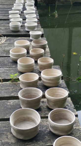 Ein paar der Steine haben wir mitgenommen, den Ton wie beschrieben aufgeschlämmt und dann Teeschalen nach einem sehr speziellen Verfahren geformt. Der Ton hat geduldig auf seine späte Wertschätzung gewartet. Allerdings sind die 40 Jahre nur ein Wimpernschlag angesichts der Millionen Jahre seines Entstehens…