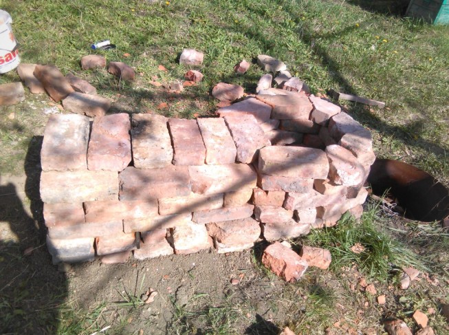 Von dort habe ich mir, tatsächlich noch im Rucksack, die vielen Vollziegel geholt, die ich für meinen ersten Raku-Ofen im Bootshaus verwendet habe.