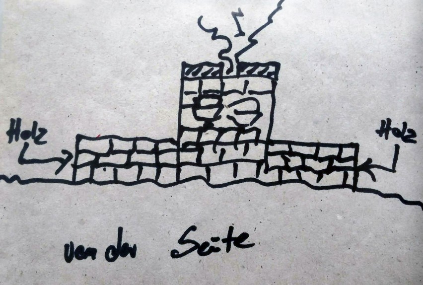 Leider liegen mir keine Fotos mehr von diesem Ofentyp vor, so dass die “wunderschöne” Zeichnung gegenüber zur Darstellung ausreichen muss.